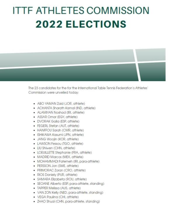 阅读更多国际乒联运动员委员会23人候选名单的公布引发了广泛关注,中国奥运冠军刘诗雯与残奥冠军赵帅的名字赫然在列。这份名单不仅体现了国际乒联对运动员代表性的重视,也展现了中国...