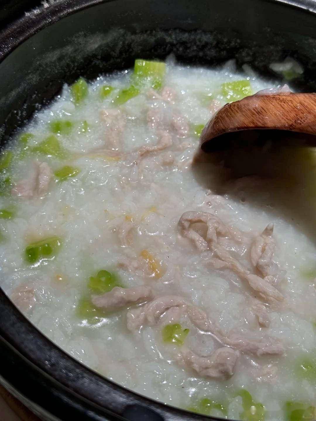 别听到苦瓜就皱眉=◁,煮成粥的苦瓜一点都不苦◆,反而有种清甜的余味▲。配上嫩滑的瘦肉片-=,蛋白质和维生素都补全了。
