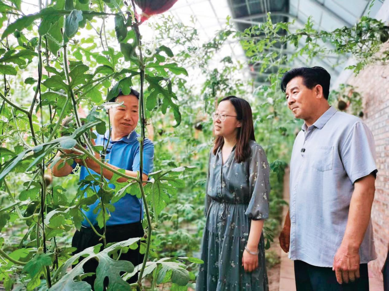 在塔元庄村智慧农场里,一排排A字架追光塔缓缓旋转,恒温恒湿环境下的蔬菜伸展着嫩芽,鲜翠欲滴。这个占地面积上万平方米,集科技、绿色、节能、环保于一体的智慧农场,是塔元庄乡村振兴示范园的一角。