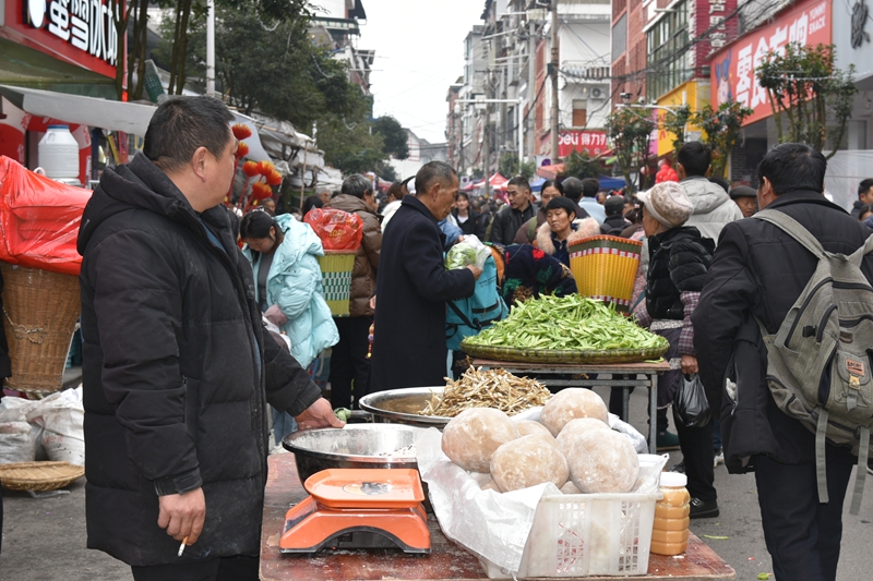 “乘著年底鄉場的人氣,我就把自己種植的葉子煙、茶葉帶到集鎮賣,也有300多元的收入。”容光鎮元木村群眾謝世國邊給顧客秤葉子煙邊說起年終鄉場帶來的好處。