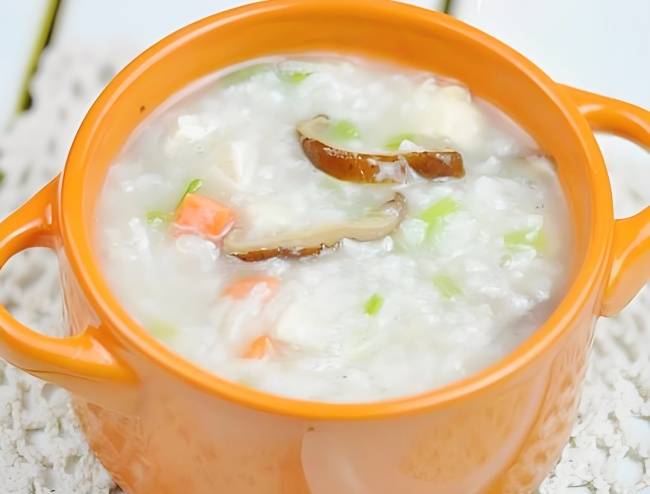 做法:大米煮至软烂。将鸡肉糜与少量水搅匀,倒入粥中,边倒边搅拌以防结块。加入胡萝卜丁或玉米粒和姜丝,煮至肉熟。最后加少许盐调味。