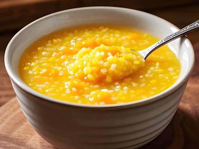 功效:南瓜属低嘌呤的碱性食物,富含钾和维生素,有助于碱化尿液;小米养胃。此粥香甜可口,适合作为主食。